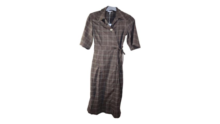 Ganni Checked Woven Midi Dress, Marron, Size 32