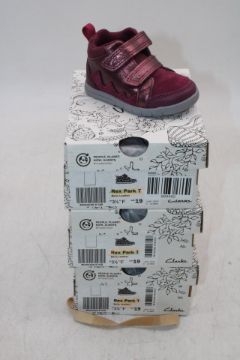 Three Clarks Kids Leather Rex Park T, Berry, UK 3.5 Fit F