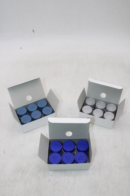 Forty-eight Mr. Colour Solvent Base Model Acrylic Paints to include 6x Super Titanium 2, 6x Chrome Silver, 6x Blue, 6x White, 6x Semi-Gloss Clear, 6x Metallic Green, 6x Red Madder, 6x Intermediate Blue, 10ml