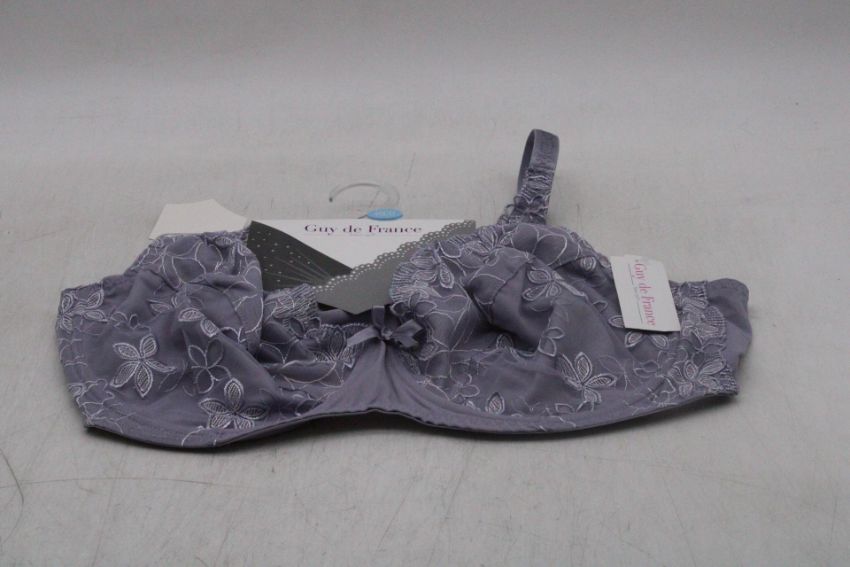 Three Guy De France Underwired Embroidered Bras, UKI 36DD, Light Grey