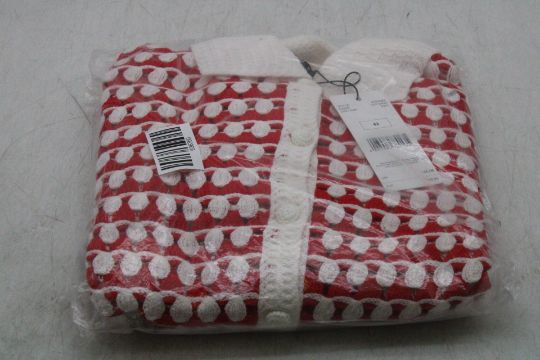 OUI Cardigan with Crocheted Lace, Red/White, Size 42