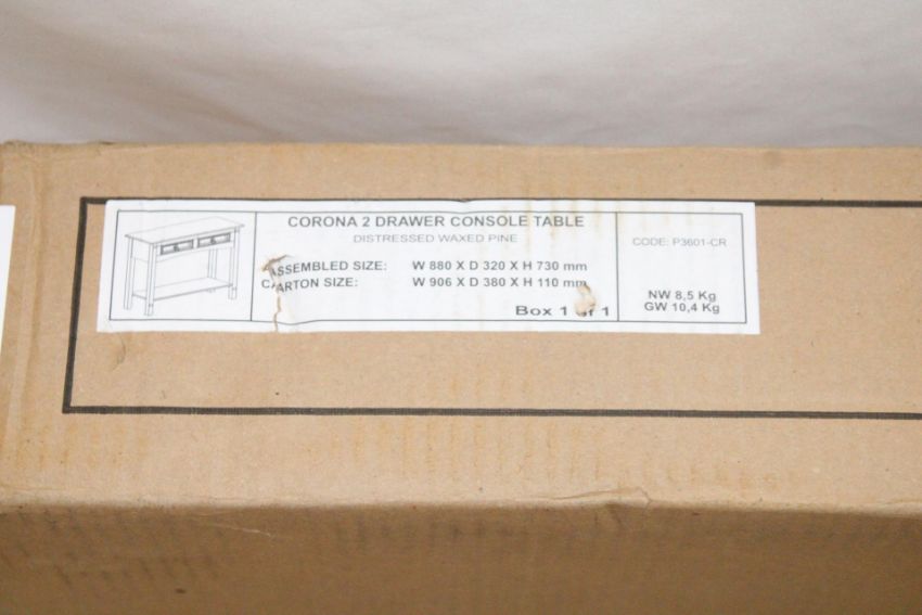 Mews Corona 2 Drawer Console Table, Distressed Waxed Pine, W-880 X D-320 X H-730mm