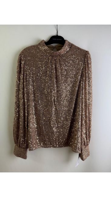 Gini London Sequined Blouse, Mink, Button Fastening, Long Sleeve, Size UK 12