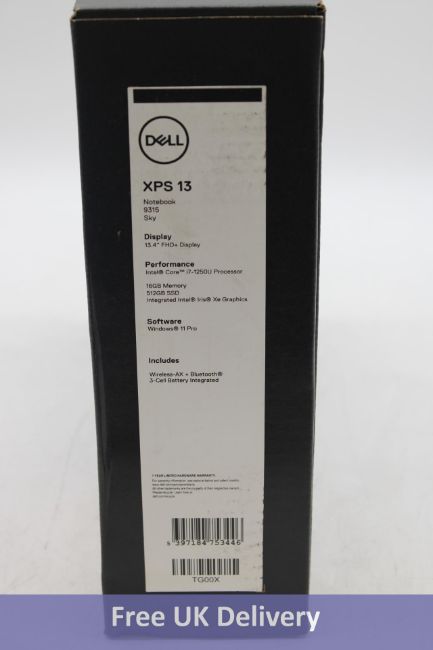 Dell XPS 13 Notebook, Model 9315, Core i7-1250U, 16GB RAM, 512GB SSD, 13.4" FHD+, Windows 11 Pro. Brand new, box sealed. RRP £959