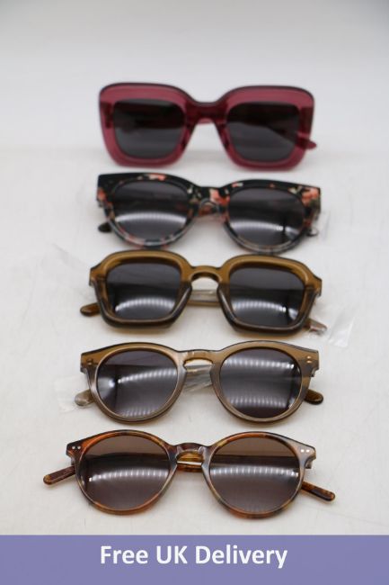 Five Ace & Tate Sunglasses, 1x Andy Maple Syrup, 1x Heather Confetti, 1x Byron Maple Syrup, 1x Monty Indian Summer and 1x Brigitte Red Velvet, No Cases