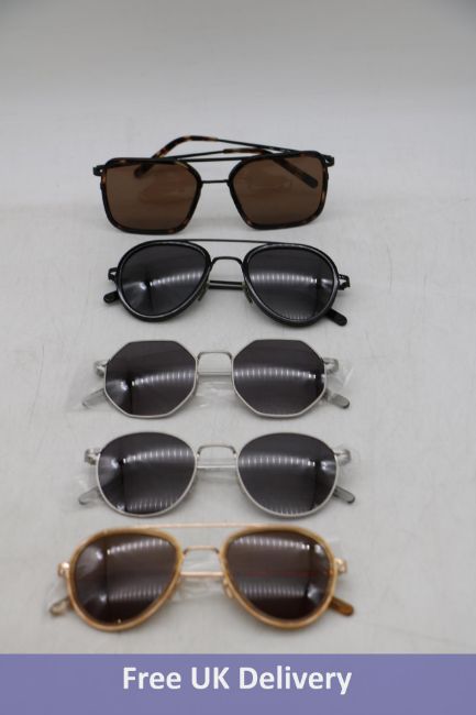 Five Ace & Tate Sunglasses, 1x Quentin Bio Black, 1x Neil Satin Silver, 1x Sean Sugar Man, 1x Quentin Soft Breeze and 1x Elton Satin Silver, No Cases