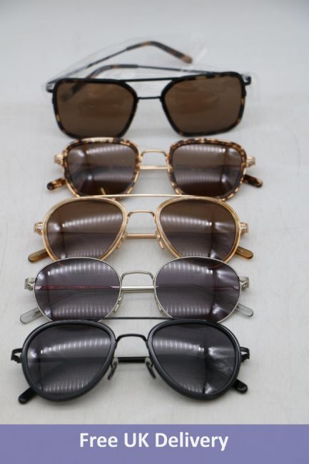 Five Ace & Tate Sunglasses, 1x Sean Sugar Man, 1x Quentin Soft Breeze, 1x Ringo Chocolate Chip, 1x Quentin Bio Black and 1x John Satin Silver, No Cases