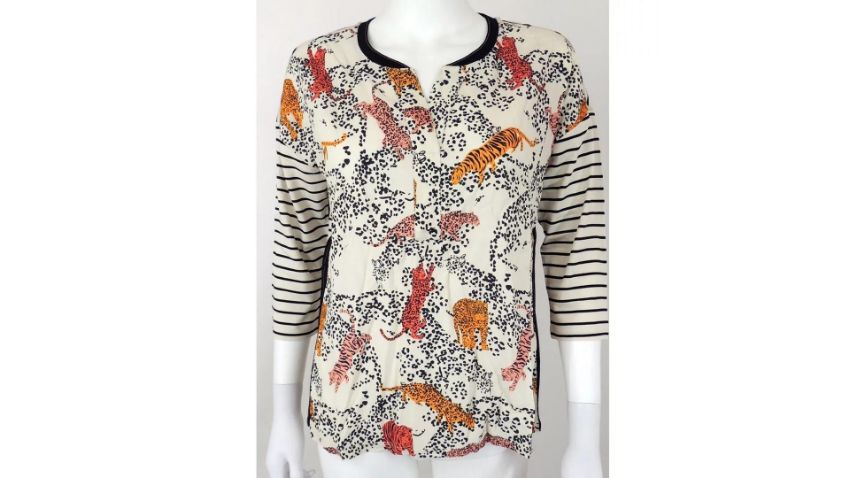 Two Oui Leopard and Tiger Print Women's T-Shirt, Multicoloured