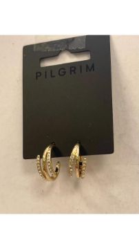 Six Pilgrim Serenity Crystal Semi Hoop Earrings, Gold Tone