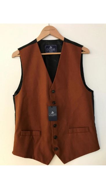 Two L.A. Smith Men's Plain Country Waistcoat, Rust, Size XL