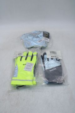 Four Proviz Items to include 1x Lightweight Running Gloves, Black, 1x Waterproof Cycling Gloves, Yellow, 2x Running Caps, Silver