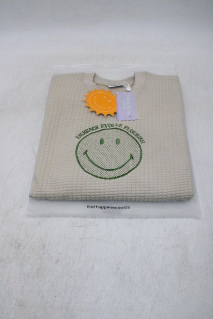 Samii Ryan Smiley Waffle Crewneck Top, Tan, Size S