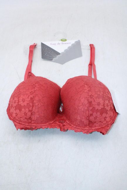 Four Guy De France Flower Underwired Padded Bra, Dark Coral, UK 38D