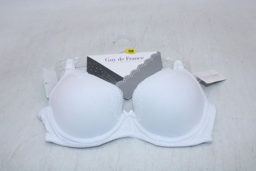 Five Guy De France Preformed Cotton Bras to include 1x UK 32A, 1x 32B, 1x 34A, 1x 34B, 1x 34C, All White