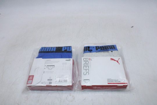 Five Packs Puma 2 Pack Boxer Briefs, Blue/Grey, Sizes 1x XL, 2x L, 2x M