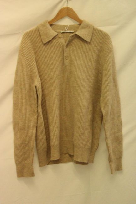 A Day's March Dover Lambswool Long Sleeve Polo, Sand Melange, Size M