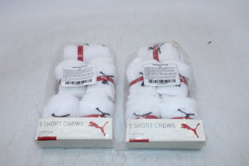 Five Packs Puma Every Day Short Crew Socks 5 Per Pack, White, UK 6-8