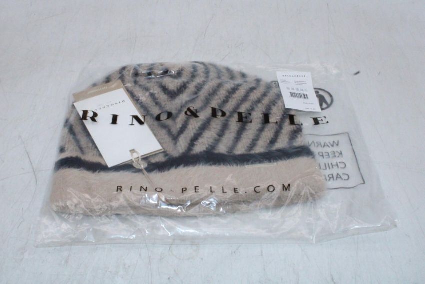 Two Rino & Pelle Niva Knitted Beanie, Oat/Black, One Size
