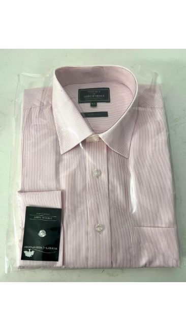 Two Woods of Shropshire Men's Shirts, Pink/White Stripe, Size 15.5