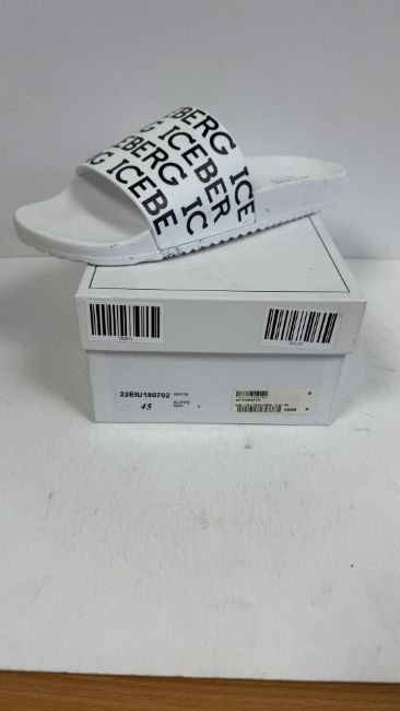 Ice Berg Men's Logo Sliders, White & Black, EU 45.Marks . Box damaged