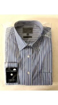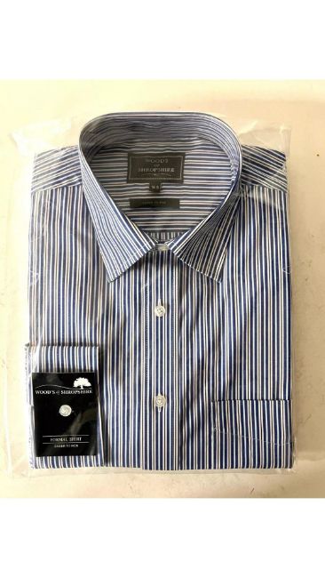 Three Woods of Shropshire Men's Double Stripe Shirt, Blue, Size 15