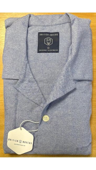 British Boxers Men's Cotton Pyjamas, Blue Herringbone, Size XXL
