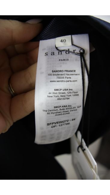 Sandro Paris Tailored Jacket with Jewelled Patches, Marine, Size FR 40