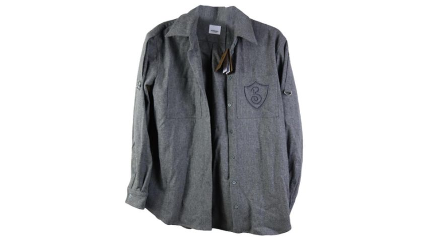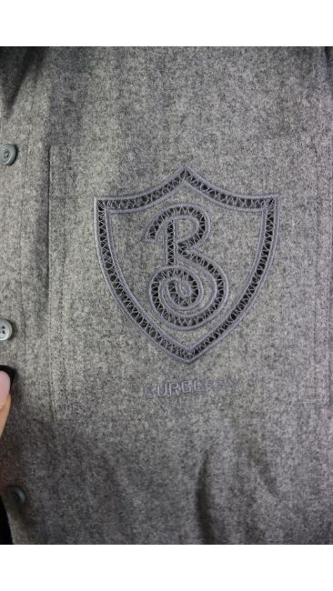 Burberry Wool Embroidered Logo Shirt, Light Grey Melange, Size EU 36