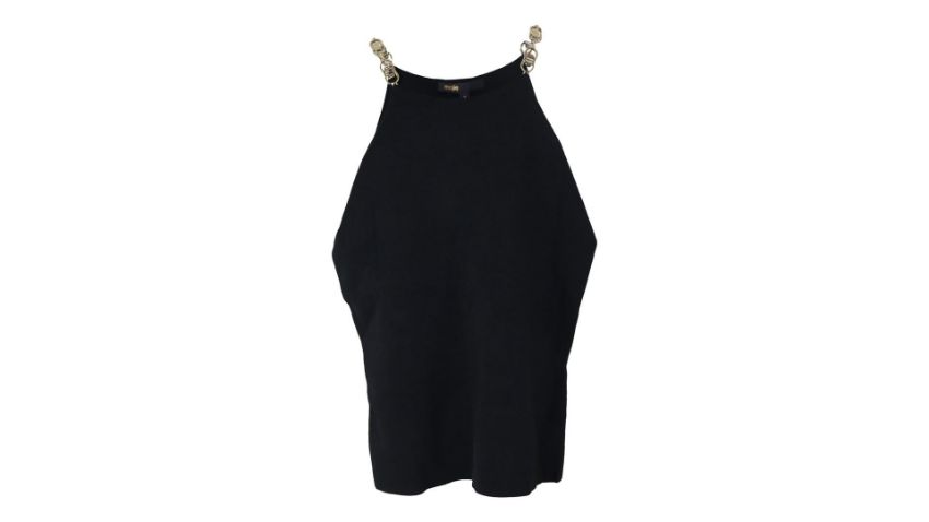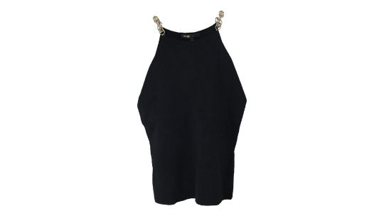 Maje Morrison Sleeveless Chain Strap Halter-Neck Stretch-Knit Top, Black, Size 3