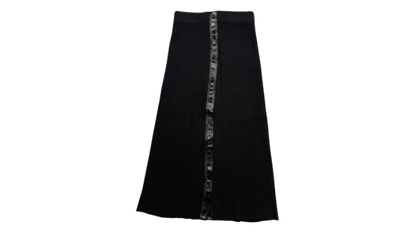 Maje Ribbed-Knit Midi Skirt, Black, Size FR 36