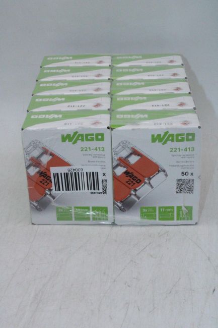 Ten Boxes of 50 Pieces Wago Splicing Connector with Levers, 4 Mm², 3-Conductor, 221-413
