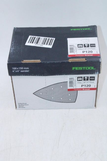 Two Boxes Festool Granat P120 Grit Sanding Sheets, 100 X 150mm, 100 Sheets Per Box. Boxes damaged