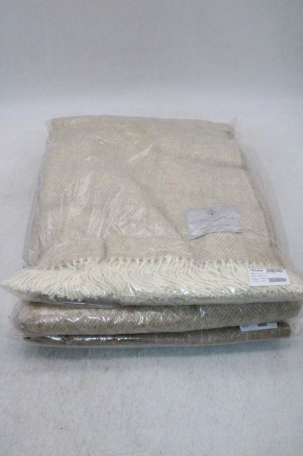 Cologne & Cotton Herringbone Lambswool Throw, Beige, 140 X 185