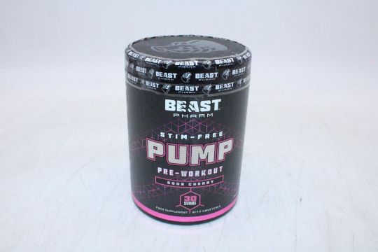 Two 450g Pots Beast Pharm Stim Free Pump Pre Workout, Sour Cherry, Expiry 09/2027