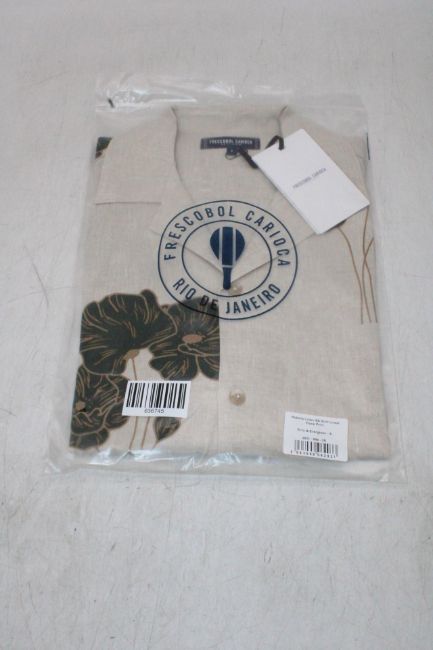 Frescobol Carioca Roberto Floral Print Short Sleeve Linen Shirt, Ecru/Evergreen, Size L