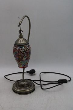 Hand-made Turkish Mosaic Table Lamp with Bronze Base