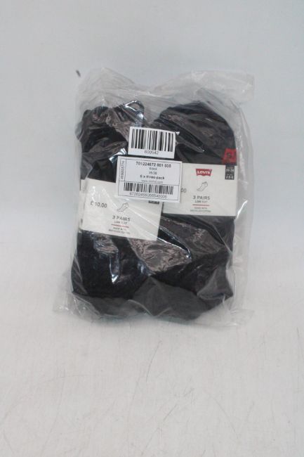Six Packs of Levi's Low Cut Logo Socks, Black, UK 6-8, 3 Pairs Per Pack
