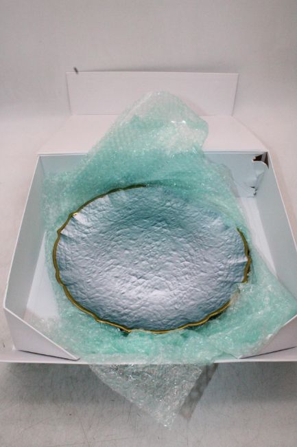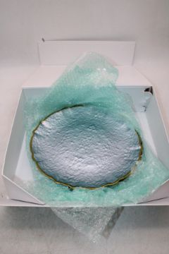 Four Debbie Marks Qube Plates, Blue/Gold, Size 33cm
