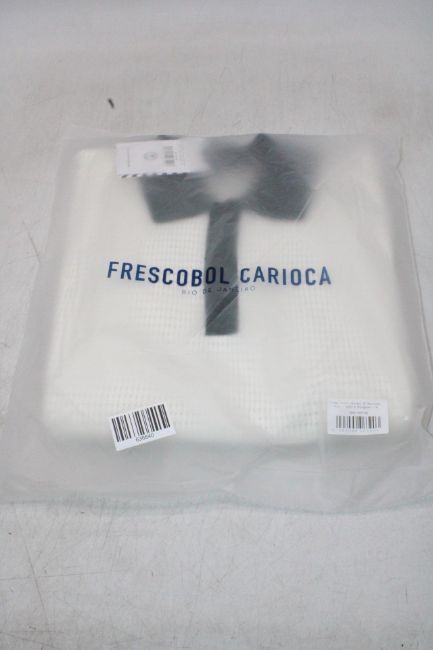 Frescobol Carioca Vidal Cotton Crochet Short Sleeve Buttoned Polo Shirt, Ivory/Evergreen, Size XXL