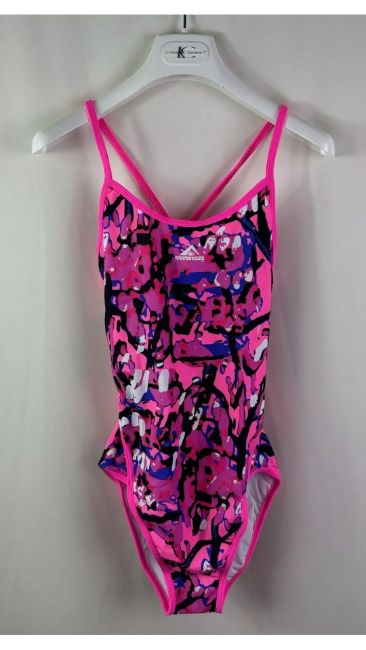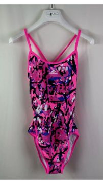 Five Swimzi Thin Strap Women’s One-Piece Swimsuit, Pink Paradise, Size 36, UK 14